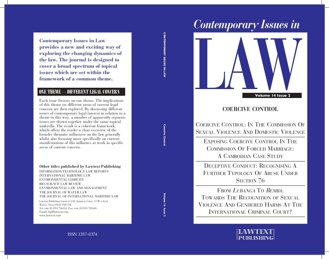 Contemporary Issues in Law - Volume 14 - Issue 2