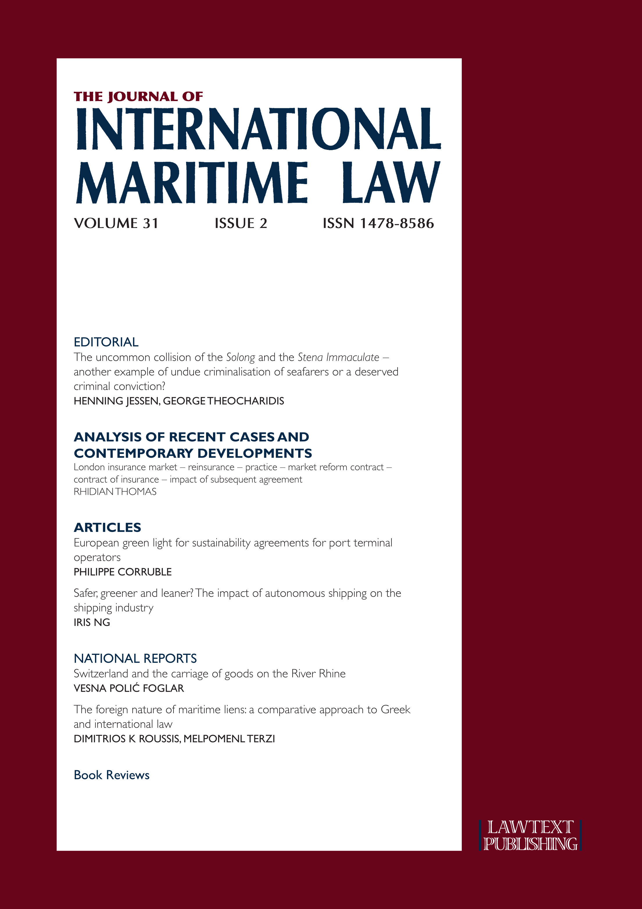 Journal of International Maritime Law - Volume 31 - Issue 2